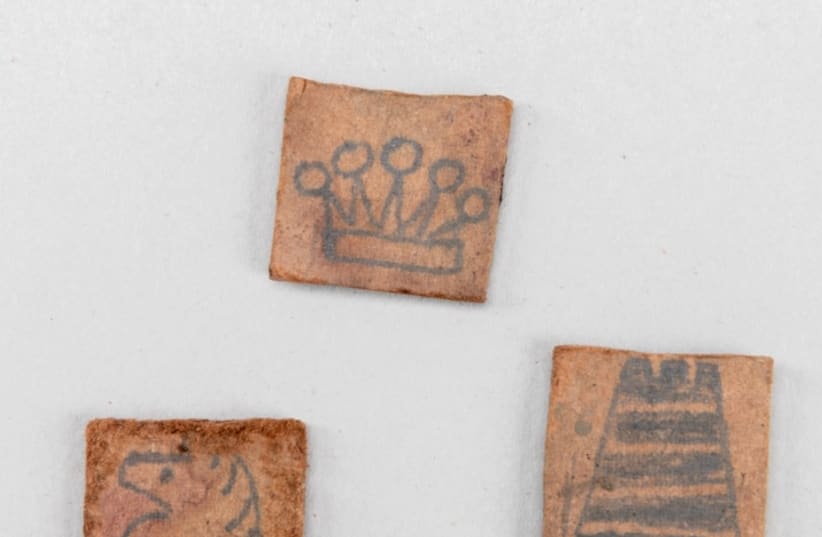 Onderzoekers hebben 35 ongelijke kartonnen doosjes gevonden die gebruikt konden worden als stukken. Daarop zijn eenvoudige tekeningetjes gemaakt van onder meer pionnen, lopers en torens.