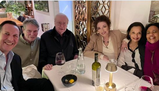 Joan Collins genoot samen met haar echtgenoot Percy Gibson en goede vrienden, waaronder Michael Caine en diens vrouw Shakira, van een gezellige lunch in Bucci, Chelsea, Londen.