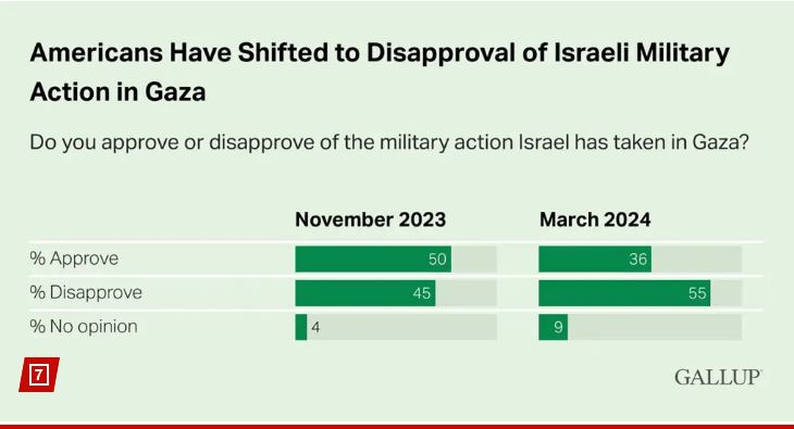 De meeste Amerikanen keuren nu de militaire actie van Israƫl in Gaza af, zo blijkt uit nieuwe opiniepeilingen nu de spanningen tussen de bondgenoten toenemen