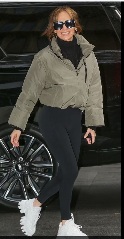 Jennifer Lopez werd maandagochtend gezien terwijl ze, getrotseerd door de regen, op weg was naar een sportschoolsessie in New York City. De 54-jarige zangeres en actrice droeg een stijlvolle outfit bestaande uit een olijfgroen jasje met rits over een zwarte coltrui, gecombineerd met een legging en felwitte sportschoenen. Lopez, die onlangs samen met haar man Ben Affleck op huizenjacht was, hield haar haar netjes vastgebonden en droeg een grote zonnebril terwijl ze met een paraplu door de straten navigeerde. Dit uitje komt vlak vóór de start van haar aanstaande tournee “This Is Me…Live”, ter ondersteuning van haar album “This Is Me…Now”. Lopez hintte dat dit album, dat gemengde tot positieve recensies ontving en vergezeld werd door een romantiek-muzikale film, haar muzikale verhaal afsluit en mogelijk haar laatste zou kunnen zijn.