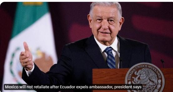 Na de beslissing van Ecuador om de Mexicaanse ambassadeur te verdrijven, heeft president Andres Manuel Lopez Obrador van Mexico verklaard dat Mexico niet vergeldt door de Ecuadoraanse ambassadeur uit Mexico te verwijderen. Deze diplomatieke spanning ontstond nadat Lopez Obrador commentaar gaf op de gewelddadige verkiezingen in Ecuador, waar een presidentskandidaat vermoord werd. Ondanks de kritiek en de daaropvolgende uitzetting van ambassadeur Raquel Serur Smeke uit Ecuador, streeft Mexico ernaar de diplomatieke relaties met Ecuador niet verder te belasten. Lopez Obrador bekritiseerde opnieuw de media, die volgens hem in heel Latijns-Amerika corrupt zijn, maar benadrukte dat Mexico niet zal deelnemen aan een conflict met Ecuador. “Om een gevecht te kunnen voeren, moeten er twee partijen bij betrokken zijn,” aldus de president.
