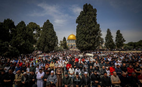 Israƫl heeft al iedereen verboden, behalve kinderen onder de 10 jaar, vrouwen boven de 50 jaar en mannen boven de 55 jaar, om te bidden bij Al-Aqsa in Jeruzalem, en alleen als ze daar een vergunning voor hebben.