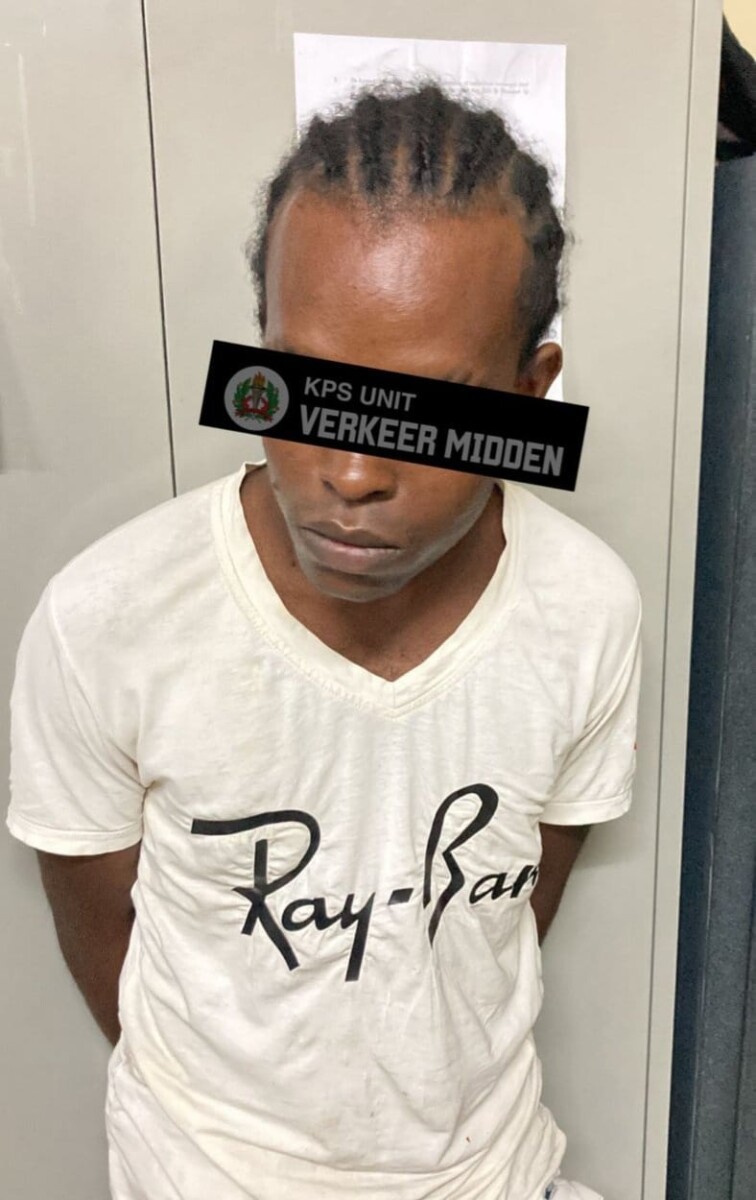 Afgelopen vrijdagavond tegen kwart voor acht werd de man in de Big Jonesstraat te Sophia’s Lust door medewerkers van de Surveillance Midden aangehouden en aan de Unit Verkeer Midden overgedragen.