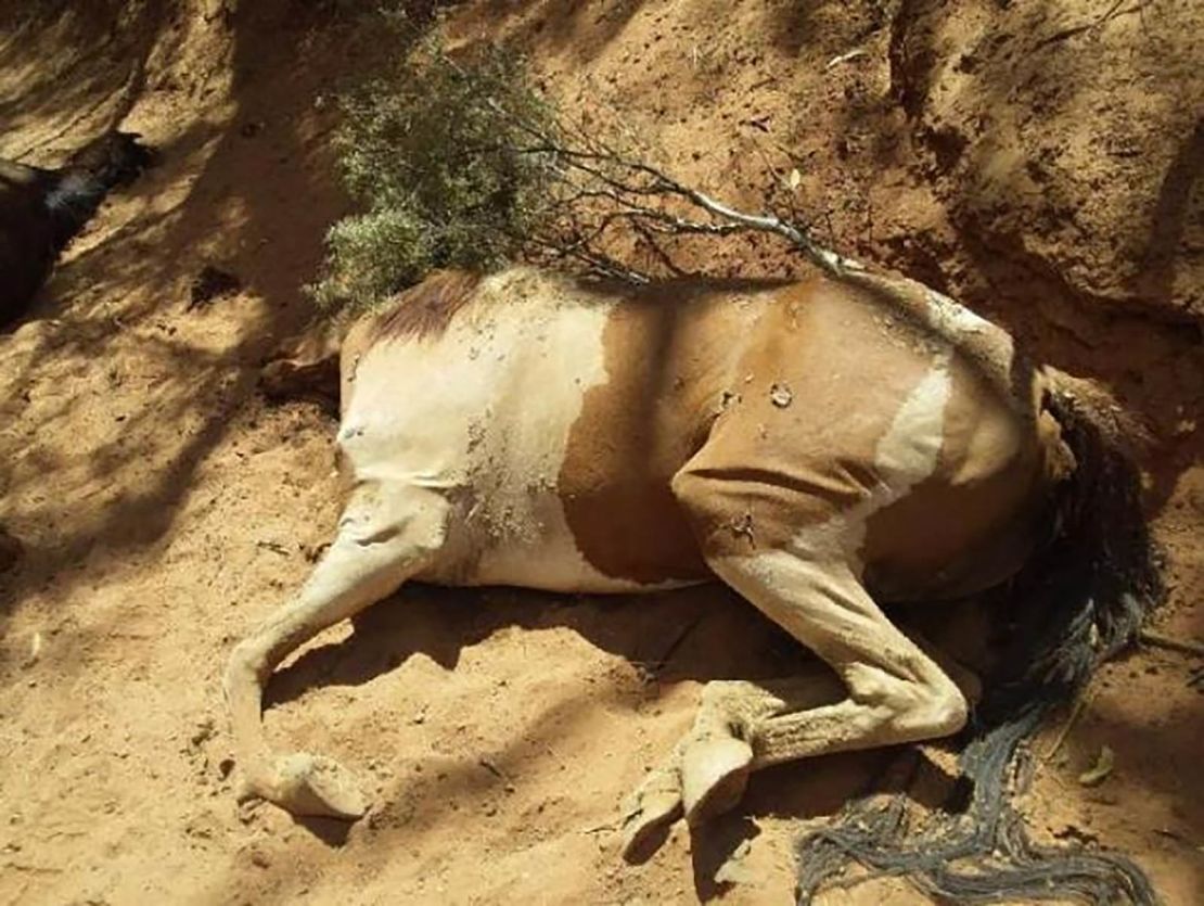 Verspreid over een stuk grond in de plaats Wagga Wagga, halverwege Sydney en Melbourne, werden op ’talloze’ plekken grote aantallen dode paarden gevonden.