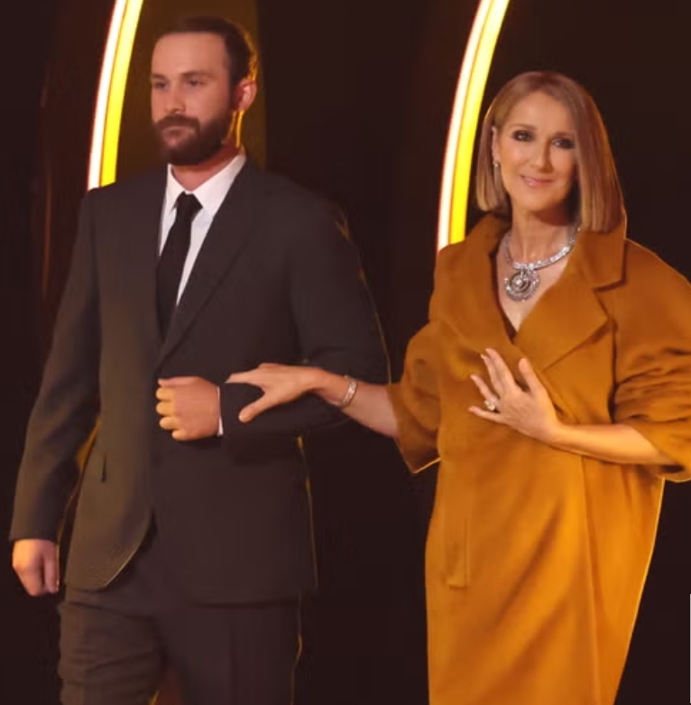 Toen ze op het podium verscheen in een zachtroze jurk en karamelkleurige jas uit Valentinoâs haute couturecollectie van voorjaar 2024, gestyled door Law Roach, werd Dion begroet met een staande ovatie van het publiek. Ze werd het podium op begeleid door haar 23-jarige zoon, RenĂ©-Charles AngĂ©lil, die volgens Dion haar de steun gaf die ze nodig had om de prijs uit te reiken.