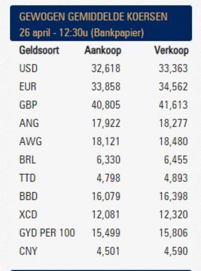 De neerwaartse trend van de wisselkoersnoteringen heeft zich in de eerste maanden van dit jaar voortgezet. Deze trend zal in de komende maanden aanhouden mede vanwege het voortzetten van het stringent monetair beleid, het prudent overheidsbeleid, de giralisering van de contante vreemde valuta middelen van de banken in het buitenland en de ruime valutapositie van de banken.