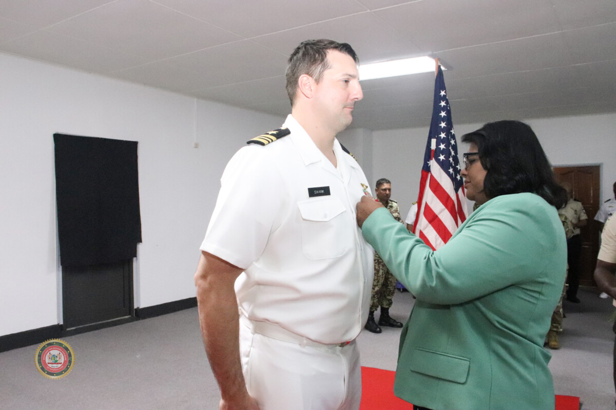 De diensttijd in Suriname van Lieutenant Commander Nathaniel Swank, Military Liaison Officer van de VS, is ten einde. Hij is vorige week door minister Krishna Mathoera van Defensie gedecoreerd met de medaille voor speciale verdiensten in de rang van commandeur.