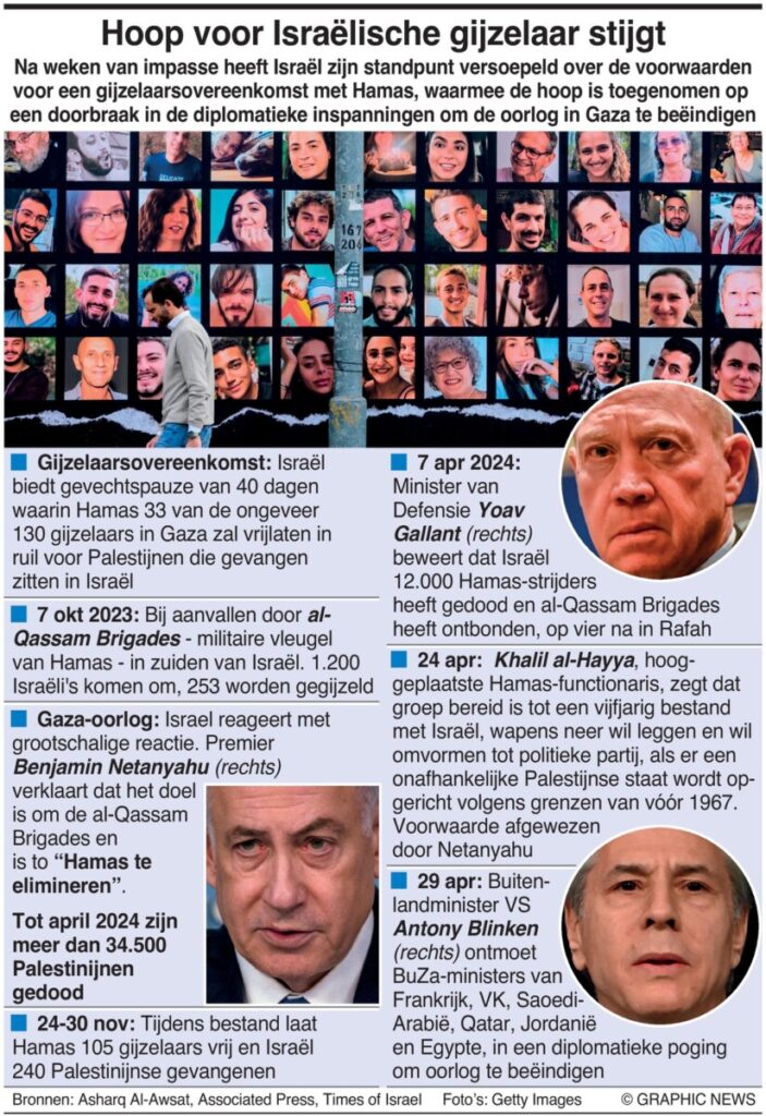 30 april 2024 – Na weken van impasse heeft IsraĆ«l zijn standpunt over de voorwaarden voor een gijzelingsovereenkomst met Hamas verzacht, waardoor de hoop is gewekt op een doorbraak in de diplomatieke inspanningen om de oorlog in Gaza te beĆ«indigen.
