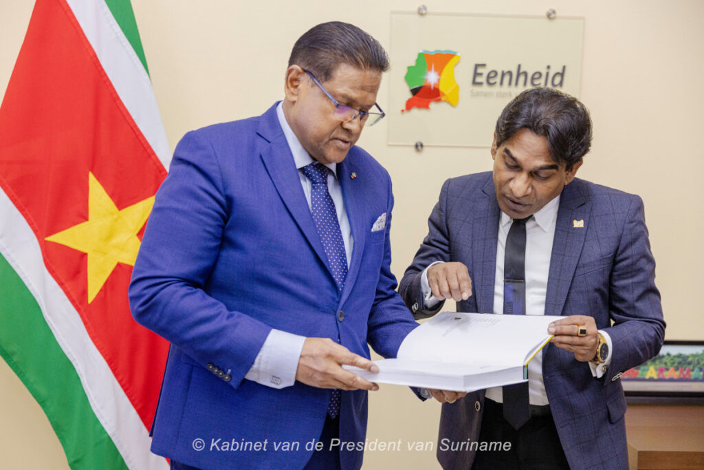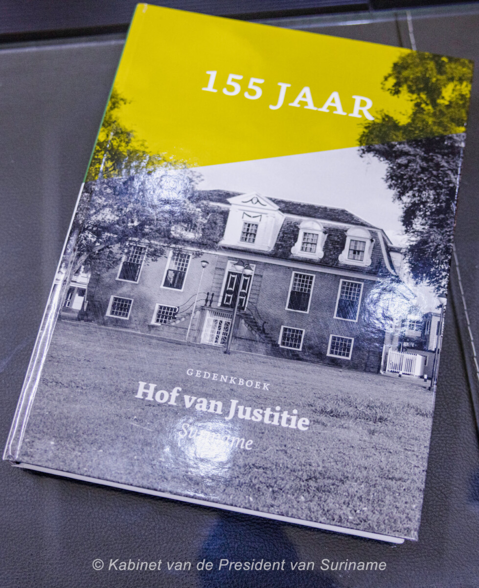 Ter gelegenheid van het 155-jarig bestaan van het Hof van Justitie (HvJ) heeft Hof-president Iwan Rasoelbaks een jubileumboek dinsdag 30 april overhandigd aan president Chandrikapersad Santokhi op het Kabinet van de President.