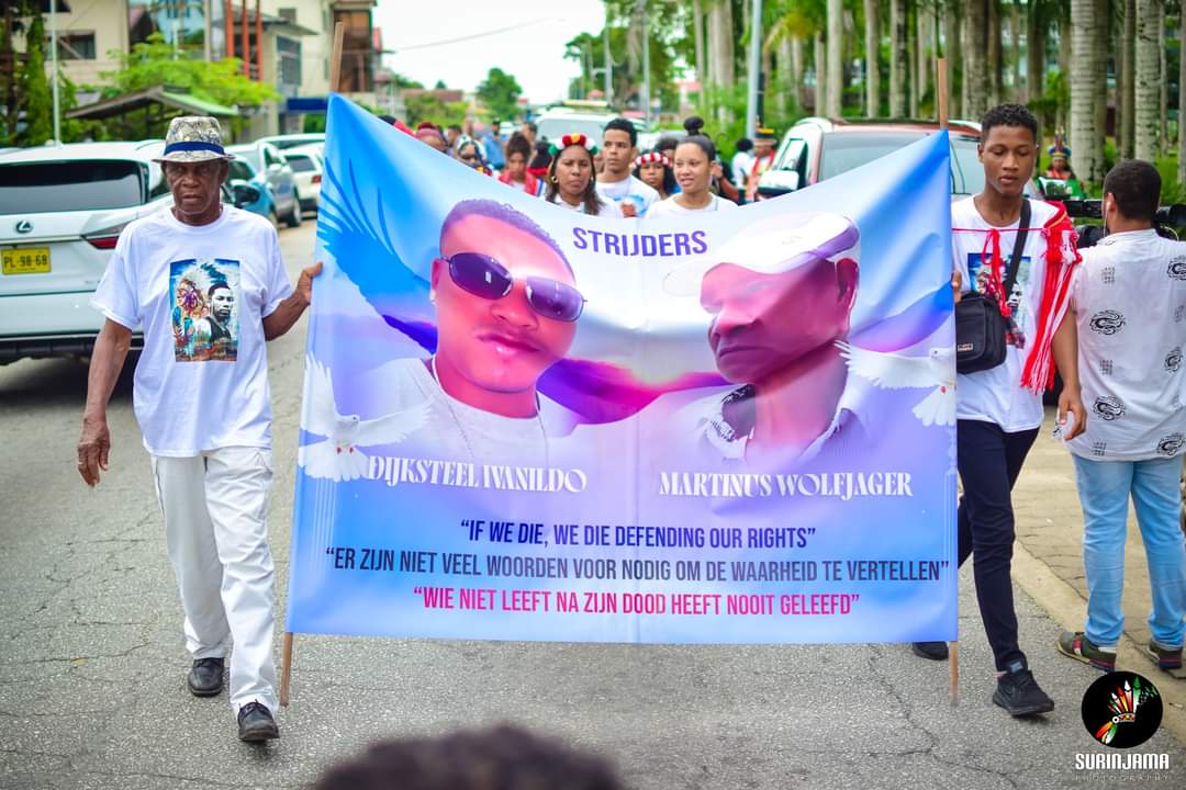 Het was donderdag 2 mei precies een jaar geleden dat de inheemse slachtoffers Ivanildo Dijksteel en Martinus Wolfjager om het leven kwamen door politiekogels tijdens een opstand tegen de voortdurende discriminatie, achterstelling, bezetting, vervuiling en vernieling van de voorouderlijke grondgebieden van inheemse volken in Suriname, met name in de dorpen Pikin Saron en Bigi Poika in Para.