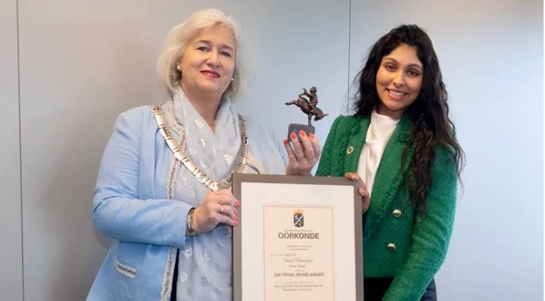 Ishata Rostamkhan, een 20-jarige uit Nieuw-Vennep, is onderscheiden met de Dik Trom Jeugd Award voor haar actieve inzet tegen bodemdegradatie.