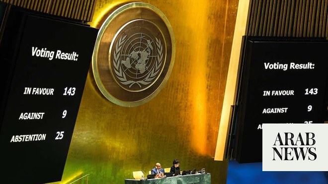 Het wereldorgaan keurde de door de Arabieren en Palestijnen gesteunde resolutie goed met 143 tegen 9 stemmen en 25 onthoudingen. De Verenigde Staten stemden tegen, samen met Israël, Argentinië, Tsjechië, Hongarije, Micronesië, Nauru, Palau en Papoea-Nieuw-Guinea.