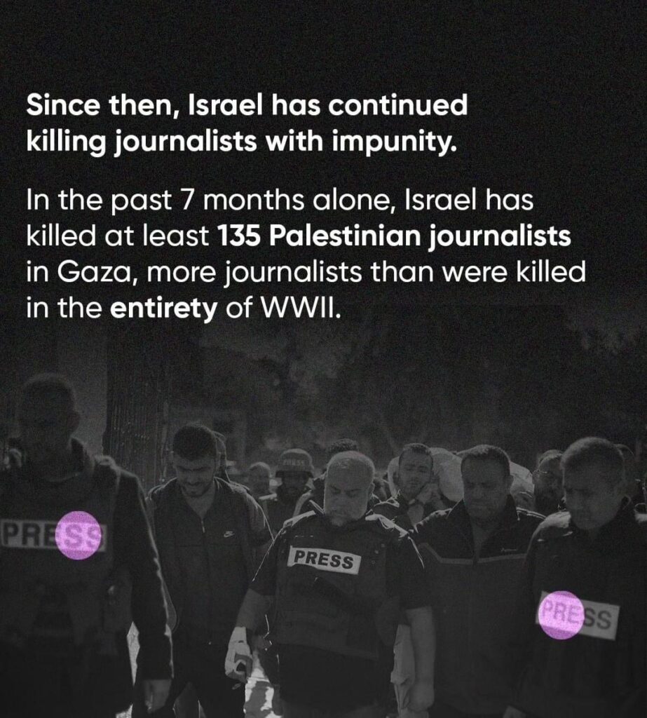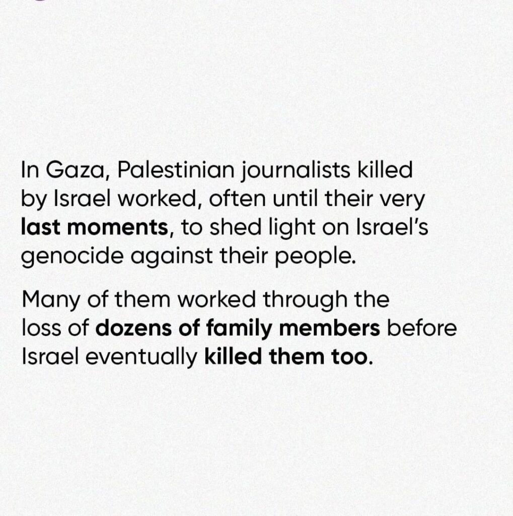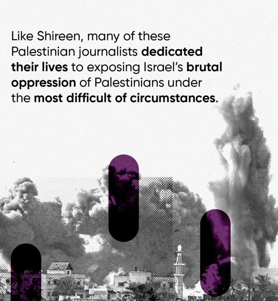 Westerse journalisten zwijgen over moorden op journalisten die in Gaza zijn vermoord door de apartheidsstaat Israël.