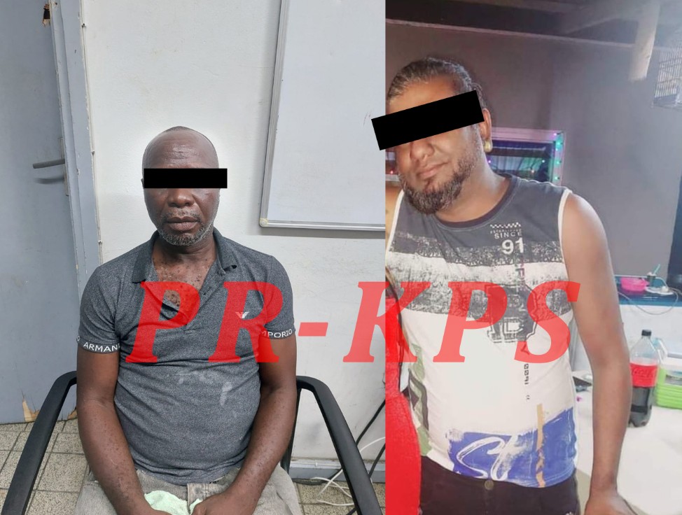 De recherche van Regio Paramaribo van het Korps Politie Suriname heeft op dinsdag 14 mei tijdens “Operatie Zero Tolerance” de twee verdachten, R.G. (38), woonachtig in de omgeving van Charlesburg, op zijn woonadres aangehouden en O.K. (52), woonachtig in de omgeving van de Floralaan, na te zijn ontboden in de boeien geslagen.