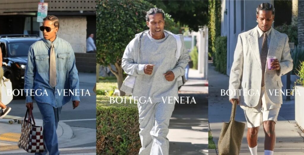 Het is een match in de modehemel. Rocky’s relatie met Bottega Veneta heeft niet alleen bevestigd dat de marketingvaardigheden van het merk slim zijn, maar hij heeft ook geholpen de veelzijdigheid van het label onder de aandacht te brengen. Door de outfits van Rocky heeft Bottega bewezen goed te zijn voor vele gelegenheden. Nogmaals, je zou Rocky PUMA en zelfs zijn eigen merchandise kunnen zien rocken tijdens vaderplichten of het promoten van zijn langverwachte en aanstaande nieuwe album, Don’t Be Dumb.