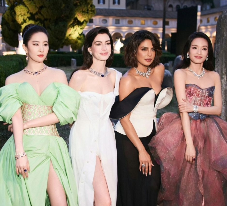 Tijdens het evenement droeg Anne een prachtige witte jurk met een dijhoge split. Shu Qi droeg een roestroze outfit, terwijl Liu Yifei werd gezien in een pistache- en gouden jurk. Priyanka, Anne, Liu Yifei en Shu Qi, de wereldwijde ambassadrices van Bvlgari, droegen sieraden uit de nieuwe collectie van het merk, die de 140-jarige erfenis van het inkopen van edelstenen viert.