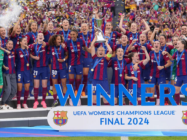 Barcelona veroverde hun derde UEFA Womenâs Champions League-titel door Lyon met 2-0 te verslaan, waarmee ze een historische quadruple voltooiden. Aitana Bonmati en Alexia Putellas scoorden voor Barça, die hun eerdere nederlagen tegen Lyon in 2019 en 2022 wisten te wreken. Dit was de laatste wedstrijd voor coach Jonatan Giraldez. Bonmati opende de score na 63 minuten, terwijl invaller Putellas de winst in blessuretijd verzekerde. Met vijf finales in zes seizoenen bevestigde Barcelona hun dominantie in het damesvoetbal. Het San Mames stadion was gevuld met een recordaantal van 51.000 toeschouwers. Putellas noemde de ervaring een droom die uitkomt en prees de steun van de fans. Lyonâs topscorer Ada Hegerberg kwam niet in actie vanwege blessureproblemen.