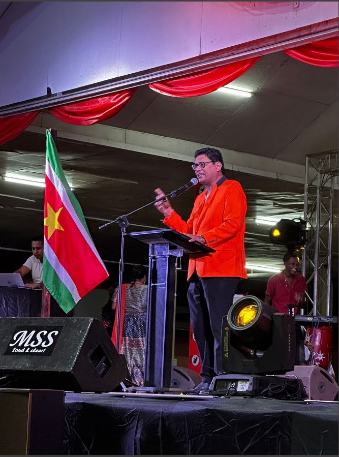 Gajadien moedigde de aanwezigen aan om meer steun te winnen voor de VHP: “Als elk van de 110.000 personen één extra persoon kan overtuigen, kan de VHP met 220.000 stemmen 34 zetels binnenhalen.”