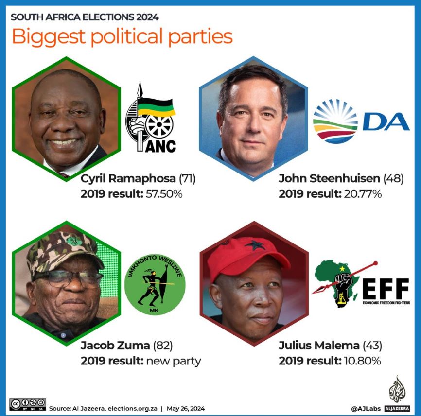 We kijken naar de 4️⃣ belangrijkste partijen die meedoen aan de verkiezingen in Zuid-Afrika:
