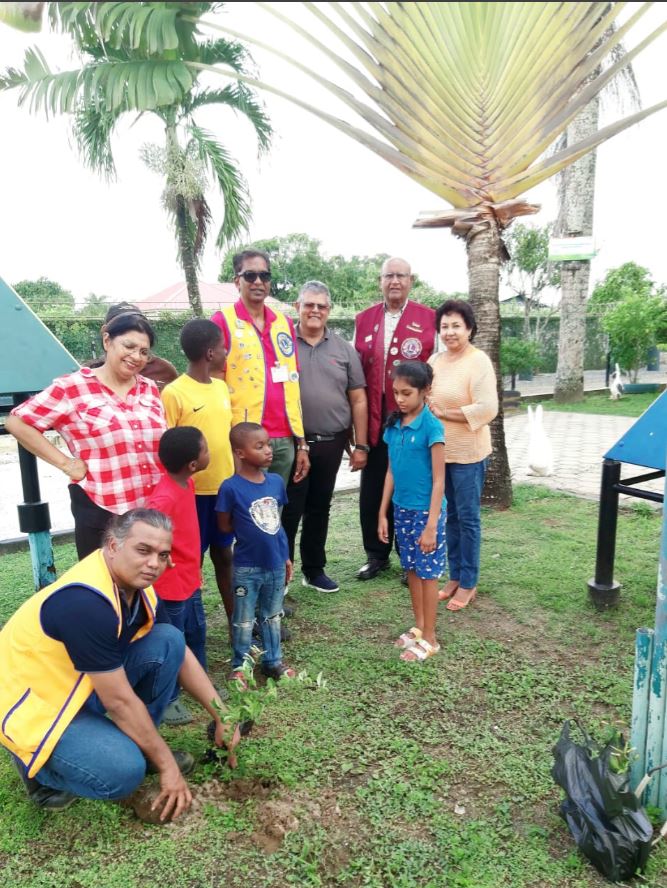 De Lionsclub Parwani heeft donderdag haar environmental programma voortgezet door fruitbomen te planten op het terrein van de Mr. Hubert Stichting.