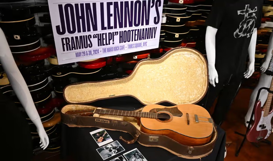 De 12-snarige Hootenanny, een akoestische gitaar die ooit door John Lennon werd gebruikt en te horen is op het album Help! van de Beatles, is voor 2,9 miljoen Amerikaanse dollar geveild door het Britse veilinghuis Julien’s Auctions.