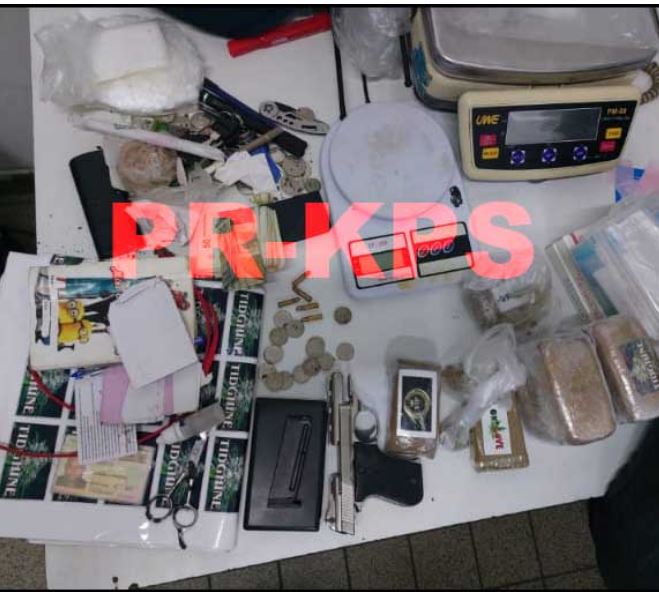 De arrestaties vonden plaats op de Marowijnestraat, nabij een scholencomplex. De verdachten, R.B. (21) uit Domburg, M.H. (34) uit het Flora-project, en R.R. (47) uit het Maretraite-project, werden betrapt op het verhandelen van drugs. Bij de operatie werd ongeveer 1400 gram hasj, 100 gram cocaïne, contant geld in SRD en Euro’s, verpakkingsmateriaal, een vuurwapen met vijf scherpe patronen, fijnwegers en twee voertuigen gevonden en in beslag genomen.