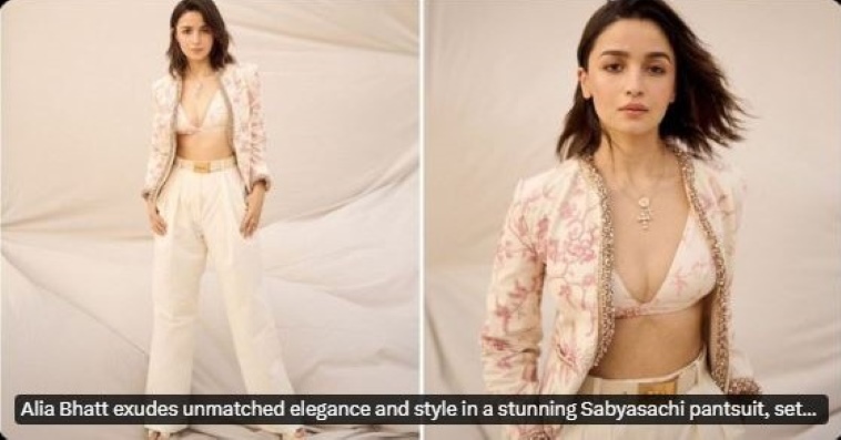 Alia Bhatt, het bekende Indiase model en actrice, heeft opnieuw haar modetalent bewezen, prachtig in een stijlvol Sabyasachi-broekpak. Met haar onberispelijke smaak stelt ze nieuwe modedoelen.