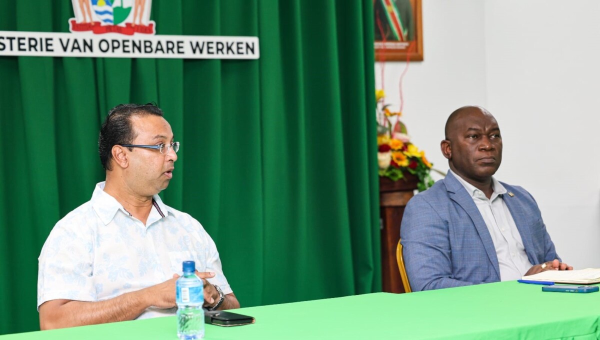 De vergadering afgelopen week werd in de conferentiezaal van OW gehouden met betrekking tot zwaar transport over de openbare wegen. Op de vergadering waren naast de twee ministers, districtscommissaris Sherin Bansi-Durga van Saramacca en deskundigen van OW en JusPol aanwezig.