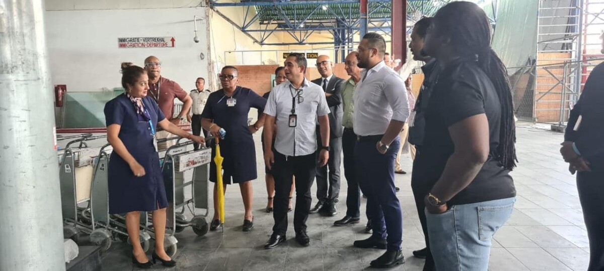 Minister Uraiqit Ramsaran van Transport, Communicatie en Toerisme (TCT) bracht deze week een bezoek aan de luchthaven om de stand van zaken door te nemen. De werkzaamheden hebben vertraging opgelopen en zullen nog enkele maanden duren. Ramsaran juichte de ontwikkelingen toe. “Het geduld en begrip van het reizend publiek zal beloond worden.” Hij riep alle actoren van de luchthaven op om gezamenlijk ervoor te zorgen dat reizigers een positieve ervaring hebben.