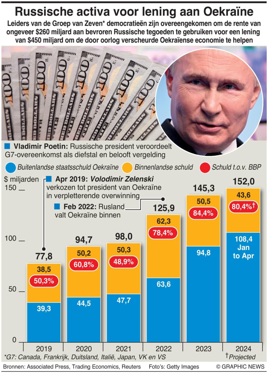 De Russische president Vladimir Poetin heeft de deal aan de kaak gesteld en gezegd dat leiders in het Westen probeerden met “een soort juridische basis” te komen voor de bevriezing van tegoeden, “maar ondanks al het bedrog is diefstal nog steeds diefstal en zal niet ongestraft blijven.”