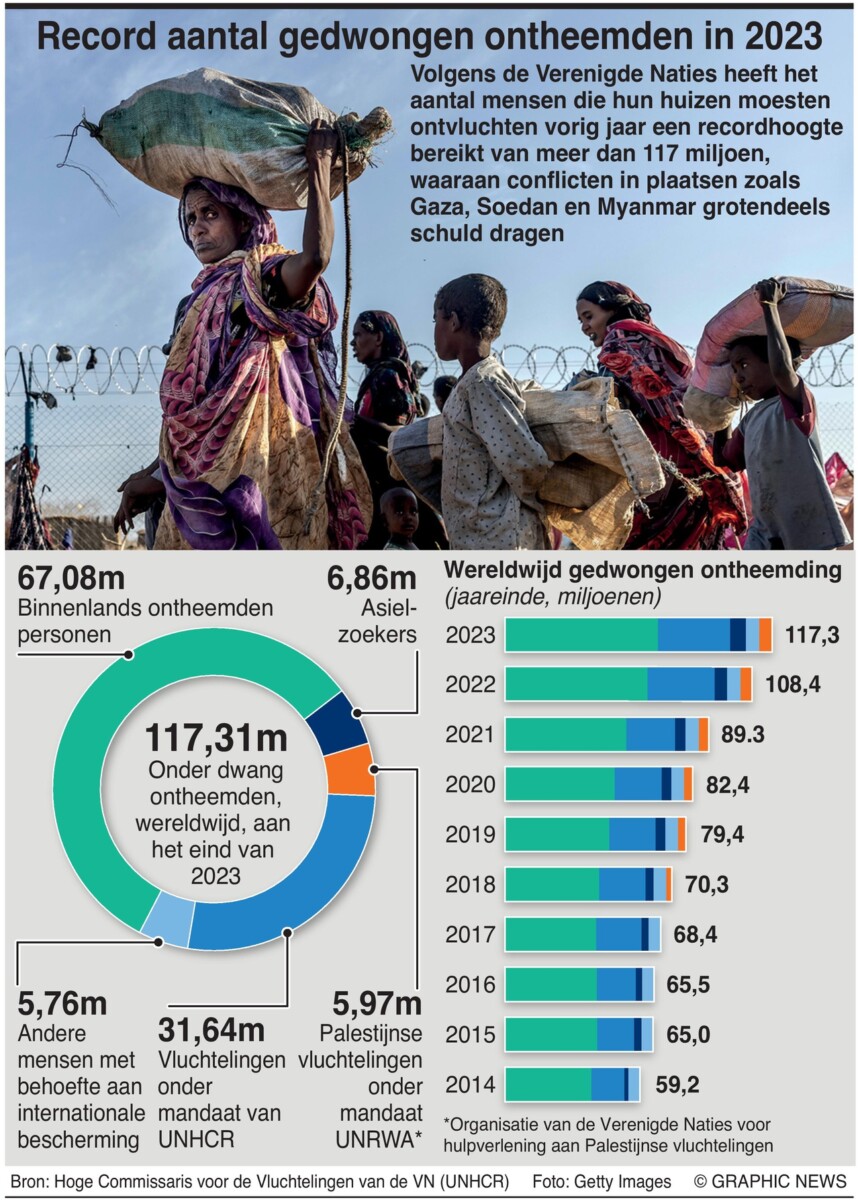 Grote conflicten zijn onder meer Soedan, met ongeveer 11 miljoen ontheemden, Gaza, waar zo’n 80% van de totale bevolking getroffen is, en het conflict in Oekraïne, met zo’n 1,2 miljoen+ vluchtelingen in Rusland, geven schattingen van Statista aan.