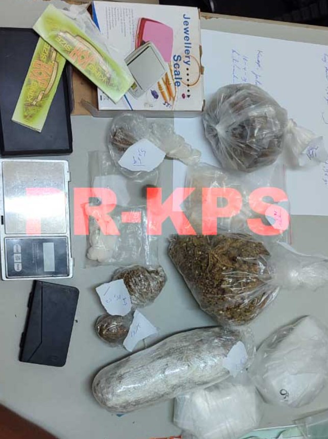 Op de verdachte werden aangetroffen en inbeslaggenomen een hoeveelheid marihuana, crack cocaïne, hasj, sukru, een fijnweger en verpakkingsmateriaal.