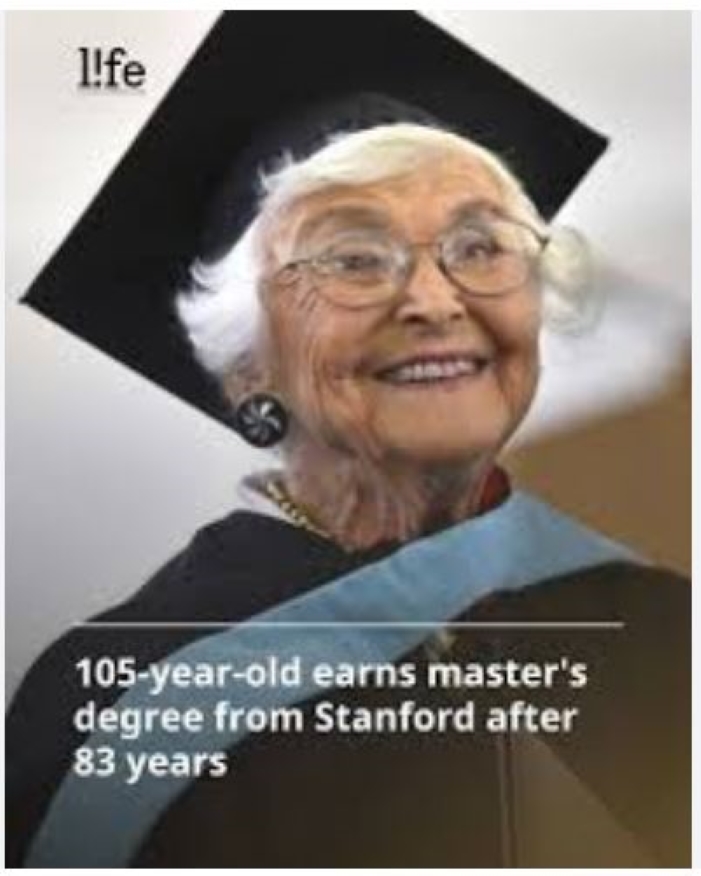 Op 105-jarige leeftijd heeft Virginia āGingerā Hislop met grootse toewijding en vastberadenheid haar masterdiploma aan de Stanford University in California (VS) behaald. Dit fenomenale moment komt 83 jaar nadat zij haar programma aan de Stanford Graduate School of Education (GSE) was begonnen.