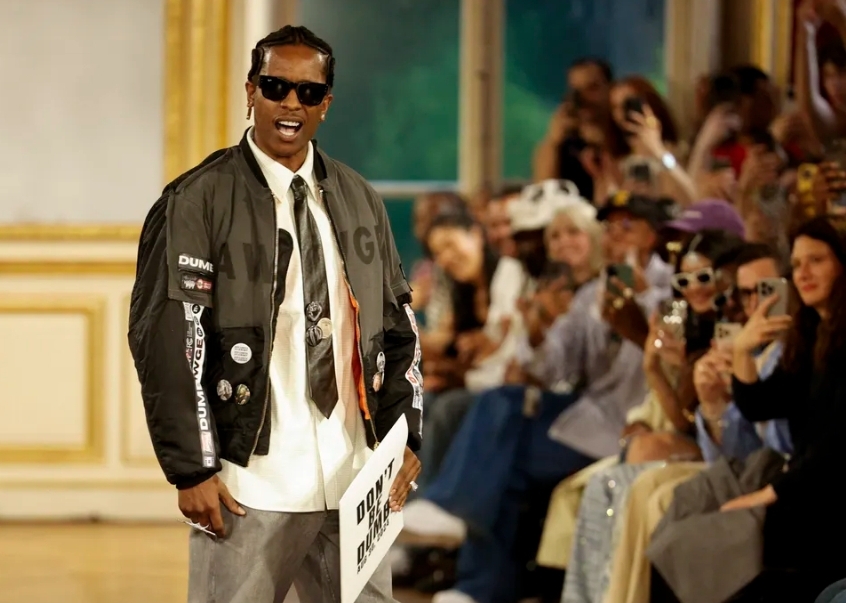 A$AP stapte uit om het publiek aan het einde van de show te begroeten, gekleed in een bomberjack bedrukt met zijn eigen mugshot, en hield een soortgelijk bord vast.