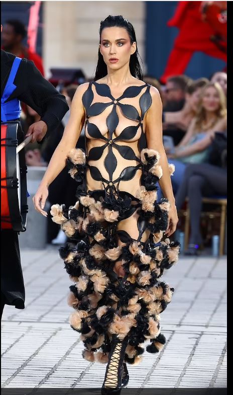 De show, ter ere van 100 jaar mode en sport, vond plaats op het beroemde Place Vendôme. Perry’s outfit, gecombineerd met dramatische make-up en torenhoge laarzen, trok veel aandacht.