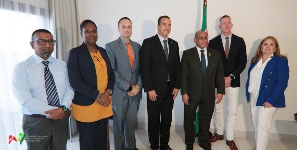 Minister Mac Andrew heeft de delegatie geïnformeerd over de huidige trends op de Surinaamse arbeidsmarkt en over het beleid en de regelgeving met betrekking tot het toelaten van vreemdelingen op de arbeidsmarkt.