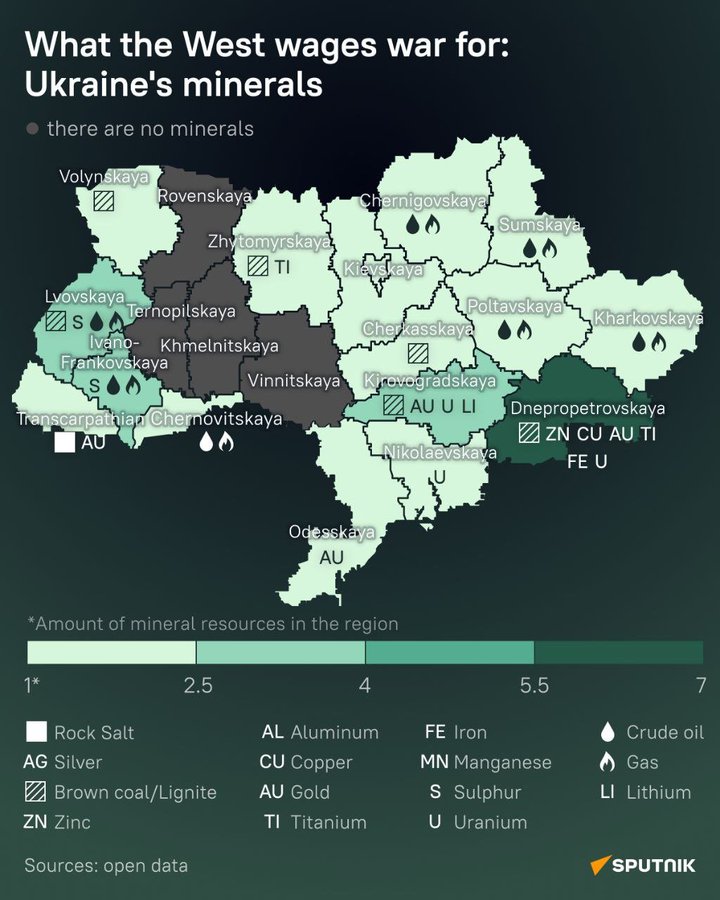 Kijk eens naar de infographics van Spoetnik om de minerale hulpbronnen van Oekraïne te zien die het Westen zo in zijn bezit heeft.