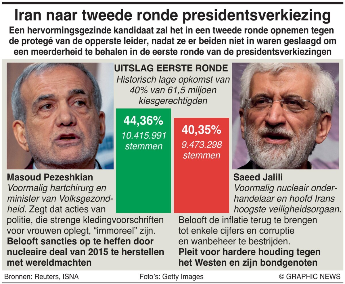 July 5, 2024 – Een hervormingsgezinde kandidaat zal het in een tweede ronde opnemen tegen de protégé van de Opperste Leider nadat zij bovenaan de peilingen stonden, maar beiden er niet in slaagden een meerderheid te behalen in de eerste ronde van vervroegde presidentsverkiezingen.