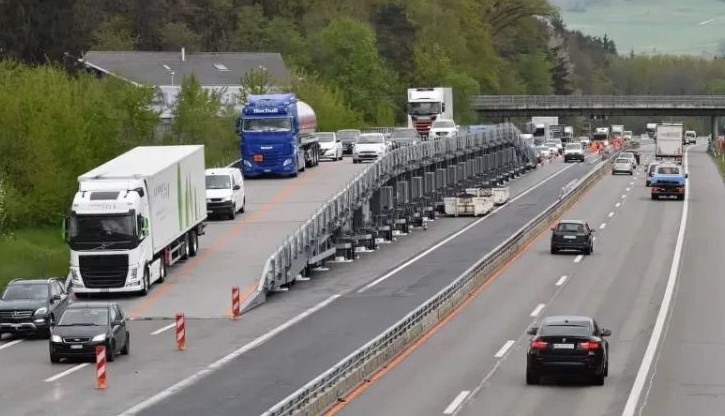 De Zwitserse Wegenonderhoud Autoriteit heeft een mobiele brug ontwikkeld, de Astra-brug, waarmee openbare wegen kunnen worden geasfalteerd zonder het verkeer te belemmeren. De 257 meter lange Astra-brug laat het verkeer bovenlangs passeren terwijl de infrastructuur eronder wordt gerepareerd.