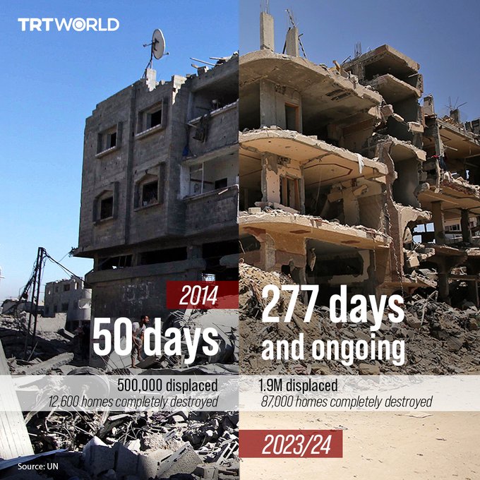 Tien jaar geleden lanceerde Israƫl een offensief in de Gazastrook na de ontvoering en moord op drie Israƫliƫrs door Hamas. Nu, tien jaar later, intensiveert Israƫl zijn aanvallen, wat leidt tot een verhoogd bloedbad onder de Palestijnse bevolking in de belegerde enclave. De voortdurende escalatie heeft de situatie verder verergerd, waardoor de humanitaire crisis in Gaza dieper wordt.