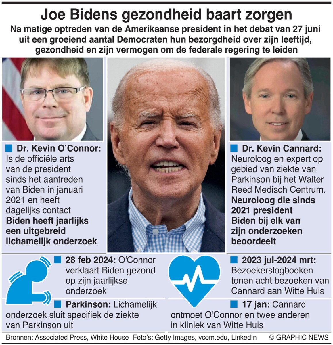 In een poging tot transparantie heeft het Witte Huis maandagavond een brief vrijgegeven van de officiĆ«le arts van president Biden, dr. Kevin OāConnor, nadat perssecretaris Karine Jean-Pierre vragen kreeg over herhaalde bezoeken van een specialist in de ziekte van Parkinson.