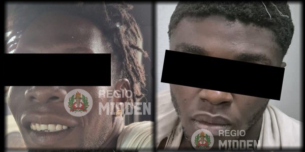 De verdachten J.S., alias “Bim Bim” (29), en J.W. (20) zijn zaterdag 13 juli door leden van Recherche Midden Suriname aangehouden.