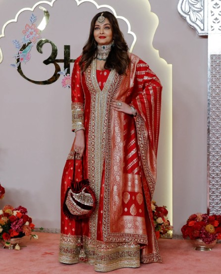 De zaal was omgetoverd tot een miniatuurversie van de heilige stad Varanasi, waar beroemdheden dansten en de Ambani-familie met Indiase zanger Daler Mehndi optrad. De bruid droeg handgeborduurde couture van Abu Jani Sandeep Khosla, met een 5 meter lange sluier en een traditioneel rood en wit ensemble, terwijl de bruidegom een gouden sherwani met sneakers combineerde.
