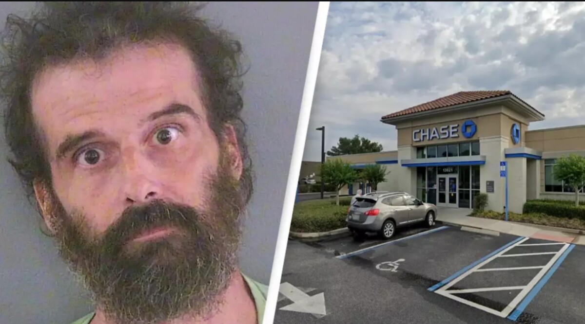 Volgens Fox 35 Orlando liep de 41-jarige Michael Fleming de Chase Bank in Lady Lake binnen en vulde een opnameformulier in voor één cent voordat hij het aan een bankbediende gaf.