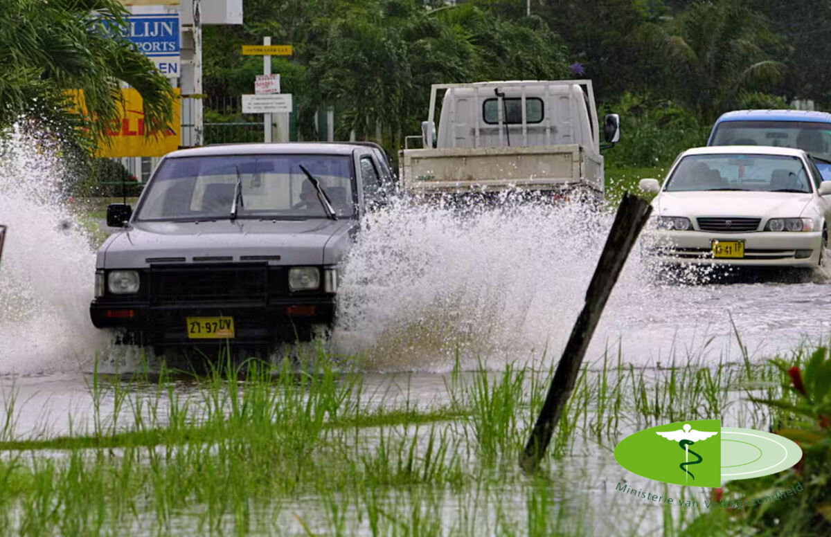 Het ministerie van Volksgezondheid adviseert de bevolking dringend om ziektes te voorkomen door niet in ondergelopen straten, bermen of erven te gaan. Wateroverlast kan ernstige gezondheidsrisico’s met zich meebrengen, waaronder de verspreiding van watergedragen ziektes.