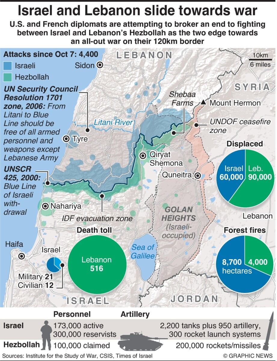 Hoewel de bijna dagelijkse uitwisselingen soms intens waren en talloze hoge Hezbollah-leiders zijn gedood, zijn beide partijen niettemin grotendeels binnen bepaalde rode lijnen gebleven, en geen van beide wilde de situatie laten escaleren. Als de laatste onderhandelingen echter mislukken, heeft de IDF zich voorbereid op een grootschalige oorlog en zijn plannen werden in juni door het oorlogskabinet goedgekeurd.