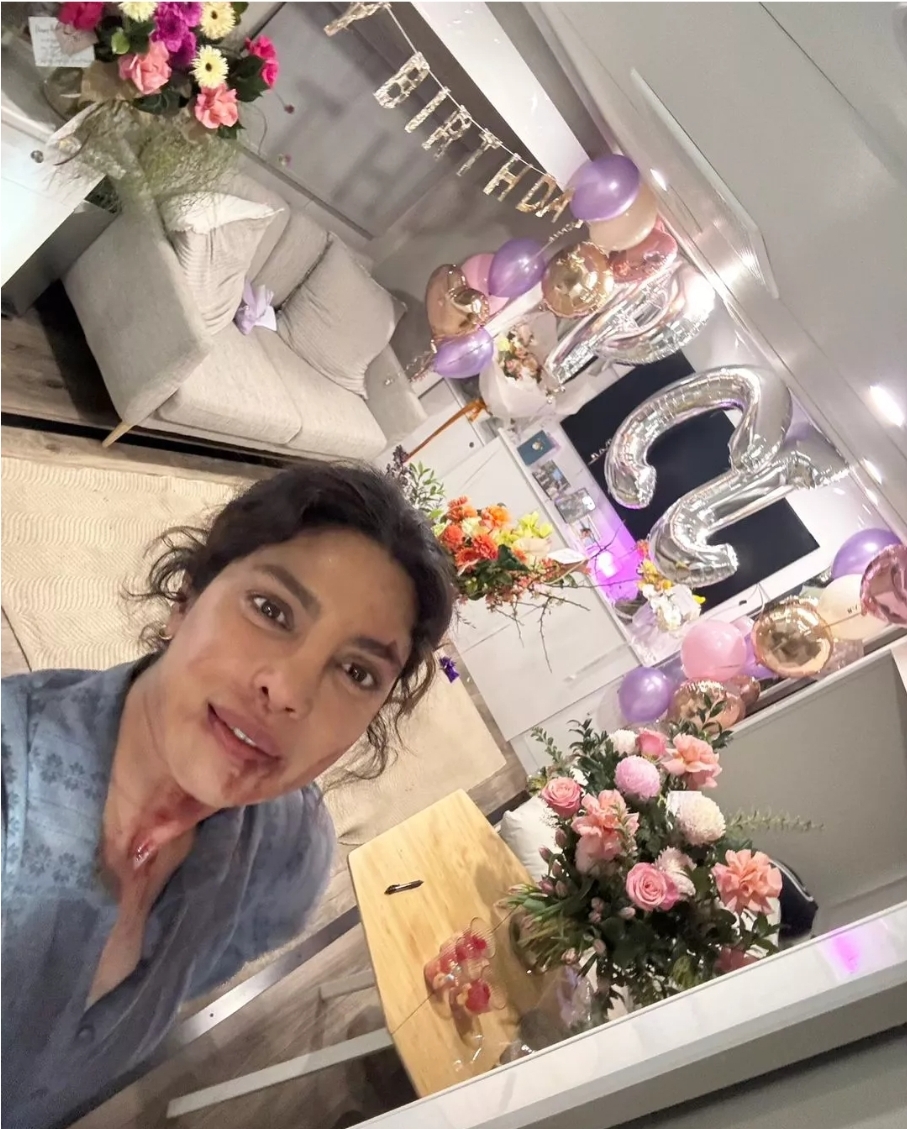 De actrice, die ‘The Bluff’ aan het filmen is in Australië, is donderdag 18 juli 42 jaar geworden. Op vrijdag 19 juli deelde de actrice een lief bericht over het vieren van haar 42e verjaardag. “Het was een werkverjaardag dit jaar”, luidt het bijschrift van Chopra terwijl ze poseerde voor meerdere bloembedden, liefdeshartjes en ballonnen met haar initialen “PCJ”.