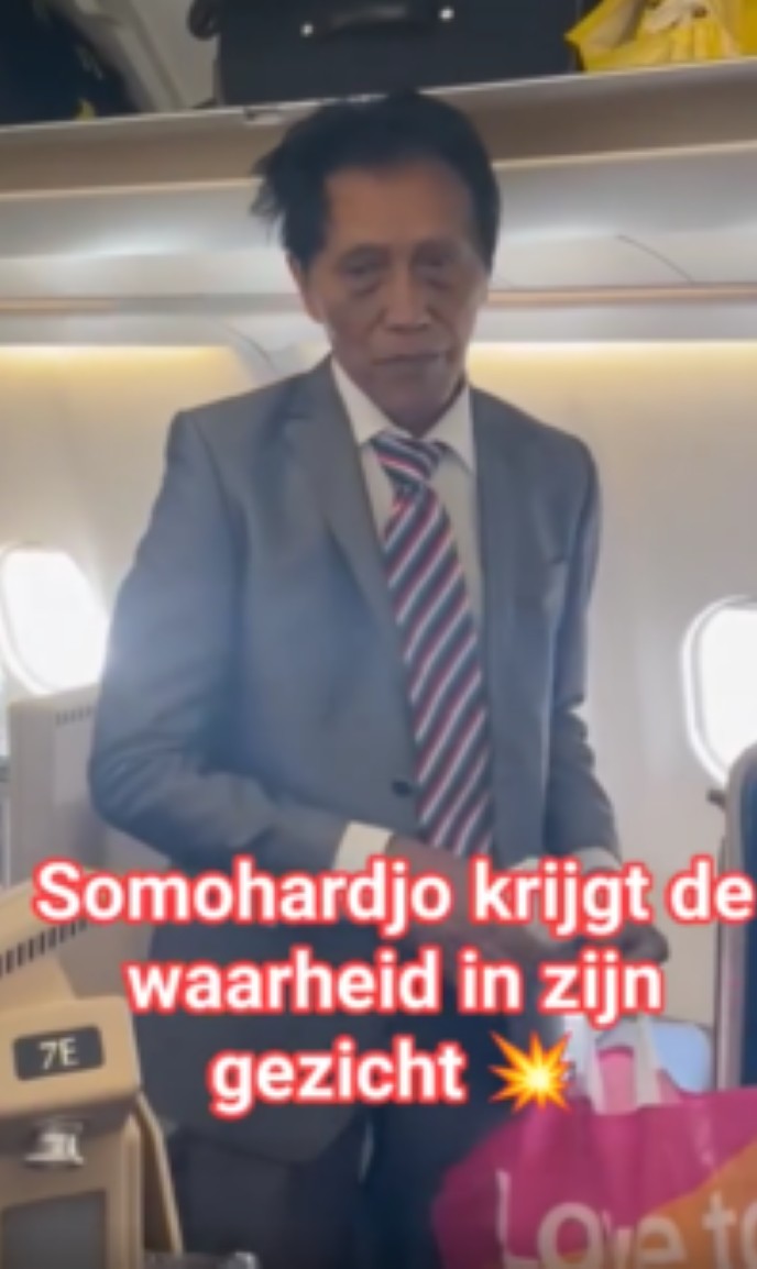 Onlangs gingen beelden viraal van Pertjajah Luhur-leider Salaam Somohardjo, aan boord van een business class vlucht. Ondanks de dure ticketprijs, werd hij tijdens de vlucht publiekelijk geconfronteerd door een onbekende passagier, die hem beschuldigde van het verschuldigd zijn van geld aan diens onderneming.