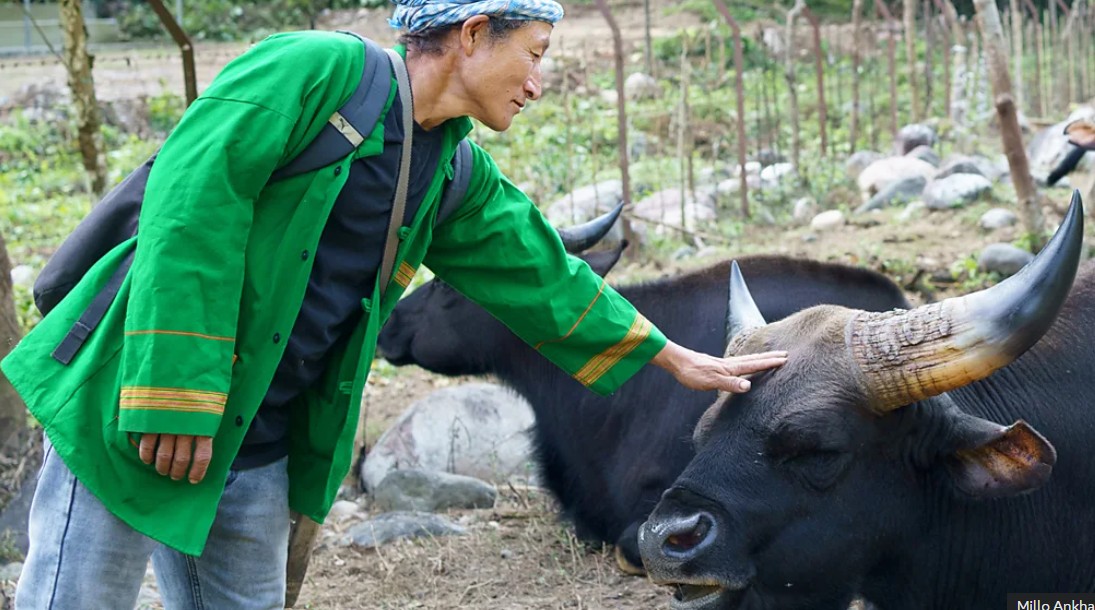 Ze begon met het fokken van mithuns toen haar man acht jaar geleden overleed. Het is een zware business, zegt ze. “Mijn schoonouders hadden in 2013 wel 50 mithuns. Bijna de helft daarvan werd opgegeten door wilde honden. Ik moest er een paar verkopen omdat ze andere boerderijen binnenkwamen en de oogst verwoestten,” vertelt Moyong aan BBC Future Planet.