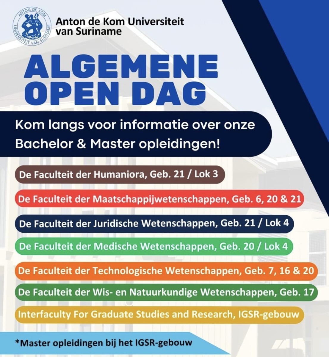 Om scholieren kennis te laten maken met het hoger onderwijs en de mogelijkheden die de Anton de Kom Universiteit van Suriname (AdeKUS) biedt wordt 3 augustus de jaarlijkse Open Fag gehouden van de verschillende studierichtingen.